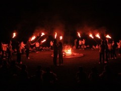 そしていよいよ、夜はキャンプファイヤー。営火長の教頭先生から、情熱の「赤い炎」と友情の「緑の炎」をいただき、点火。それからは、何週間もかけて準備してきたスタンツの披露のときです。ダンスあり、お笑いあり、劇ありの楽しい時間はあっという間に過ぎていきました。最後は分火式。班ごとにファイヤーから火を分けていただき、楽しかった思い出を心に刻みました。