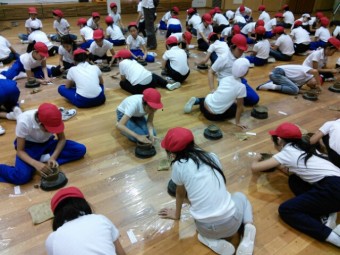 学年全員で撮った記念撮影から始まり、陶芸体験、野外炊事、そして夜のキャンプファイアーへと、思い出作りは続きます。