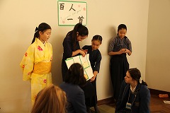 小学校 2017.12.12 オーストラリア姉妹校からの留学生との交流会 12月7日(木)、6年生の子どもたちは、オーストラリアからの留学生を招いて日本の伝統文化を伝える「Japan Festival」を開催しました。茶道や華道、百人一首、箏、温泉、祭りなどさまざまなブースを開き、日本の伝統文化を体験していただきました。ランチも一緒に食べ、その後のフリートークタイムでも互いの文化について交流しました。6年間積み上げてきた英語が、きちんと相手に「伝わった!」という喜びは大きな自信になったようです。本物に触れる場が、子どもたちを成長させることを感じた一日でした。 前の記事へ 次の記事へ