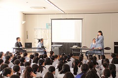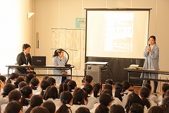 同じ電車や通学路で通っても、ひとたび中学校に進学すると生活は一変すること、しかし学年で日々の生活を共にし、行事などを重ねるうちに学年でのつながりが深くなっていくこと、別れがたいほど家族のような絆ができることなどを話してくれました。