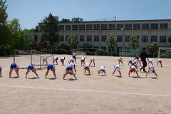 跳躍のタイミングをつかみ、連続ジャンプを生かしながら馬跳びをしました。鉄棒ワークシートをもとに、様々な技に取り組み、体をいっぱい動かしました。