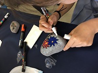 ストーンペイントでは、海で拾った石に、それぞれの絵をペイントし、よい思い出の品とすることができました。