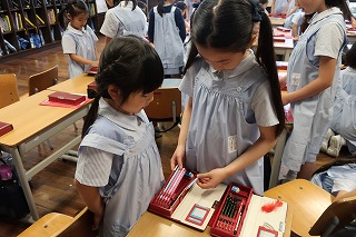 4年生が、1年生に「整頓の仕方」を教えに来てくれました。