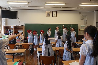今日は、運動会に向けて、1年生から6年生で構成されるデュシェーン班が集合しました。
