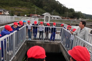 現在ソフィータイム(総合的な学習)で逆瀬川について学習し、ダムについても学んでいます。クラスごとに分かれて施設の方に案内していただき、魚道という数少ない設備を持つ青野ダムを見学することができました。子どもたちはお話を聞きながら熱心にメモを取っていました。
