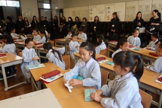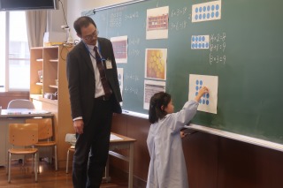 2年生の授業は算数。九九を活用して、魔方陣作りに挑戦したり、身の回りの物の数を工夫して数えたりすることに取り組みました。2年生になって出会うかけ算も、覚えるだけにとどまらず、活用する場面も大切です。試行錯誤しつつも子どもたちが一生懸命考える姿を参観いただけたことと思います。