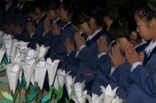 子どもたちは、心を合わせて祈り、一人ずつゆりの花をおささげしました。