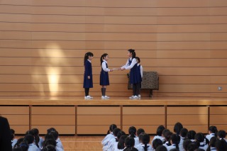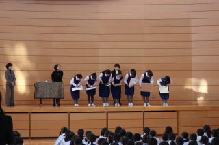 また、児童会から、丁寧な言葉遣いとプラクティスのふりかえりについて呼びかけがありました。児童会が行ってきた「です。」「ます。」運動について、児童会役員が劇を通して、みんなの様子を分かりやすく説明してくれました。丁寧で美しい言葉遣いは、相手を思う気持ちの表れです。