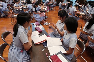 今日から6年生の錬成会が始まりました。カトリック芦屋教会の川邨裕明神父様ご指導のもと、自分の心を見つめる二日間です。
