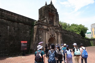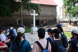午後は、フィリピンをスペインからの独立へと導いた英雄ホセ・リサールの資料館や記念公園、サンチアゴ要塞などをめぐり、午前中に学んだ歴史を自分の目で確かめて歩きました。特にサンチアゴ要塞は、旧日本軍が戦時中に指令本部として使っていたということを知り、自分たちとフィリピンとの関係の深さを考えずにはいられない様子でした。また、フィリピンでもっとも古い歴史をもつ聖アウグスチノ教会も訪問しました。