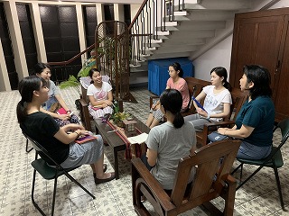 夜、それぞれが学んだことを語り合う「分かち合い」では、「現実を知ることの大切さがわかった」「自分にできることをこの体験学習の中で見つけたい」など、二日間で感じたことを素直に発言する姿がありました。生徒たちは、五感と心をフルに働かせてフィリピンを体験しています。