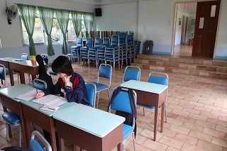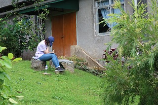 シスター棚瀬から「これまでの五日間で強く心に響いたことは何ですか。なぜそのことが心に響いたのでしょう。そのことを通して神様はあなたに何を問いかけていますか。そして、これからの自分の生き方について何を教えてくれているでしょうか。」と問いかけられた生徒たち。一人ひとりが敷地内の好きな場所に散らばり、1時間半ほど沈黙の中で自分の心を見つめました。