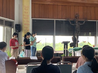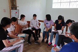 午後からは小グループに分かれての「分かち合い」を行いました。わずか5日間のうちに、これまで持っていた自分のものさしでは到底測ることのできない現実に直面した生徒たちの口から、熱い思いが溢れ出しました。