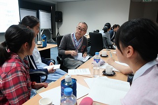 午後からはJICA(独立行政法人国際協力機構)フィリピン事務所を訪問。日本のODA(政府開発援助)を実際の現場で実施する方々の取り組みを教えていただきました。地球規模の課題が増え、国と国の相互依存がますます強まる中で、日本さえよければいいと考えるのではなく、関わり合う国々の安定を図ることが、日本にとっても相手の国にとっても利益になることを学びました。組織の概要を伺った後、経験豊かな4名の職員の方々を囲んで具体的な体験談を聞かせていただきました。体験談を聞きながら、自分の将来について相談する生徒の姿も見られました。