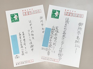 5・6年生の国語では、「はがきの名文コンクール」に応募するはがきを書きました。