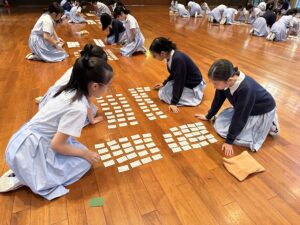 小学校 2024.07.05 5年生 百人一首大会 5年生が百人一首大会を行いました。国語の時間学習してきた成果を発揮する良い機会となりました。 とれた札の数はそれぞれでしたが、みんなで楽しく取り組めました。 次の大会目指して、また、百人一首に親しむ時間がとれるといいですね。 前の記事へ 次の記事へ