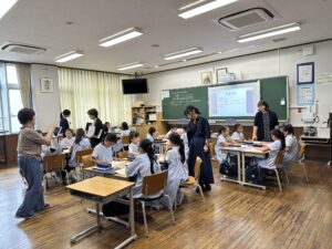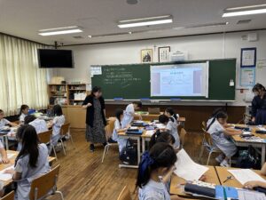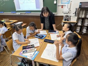 小学校 2025.09.26 4年生 授業研究会 4年の算数の授業で、授業研究会が実施されました。本年度の研究テーマにそった授業を公開して、子供の姿を通した授業の在り方を研究しています。先生が互いに切磋琢磨する機会となっています。今回の授業では、向かい合った辺が並行となる台形を三角定規を使ってかくことがねらいでした。四角形の中に台形を見つける工夫がされていたので、興味を持ってお互いに学び合う姿が見られました。 前の記事へ 次の記事へ