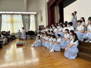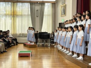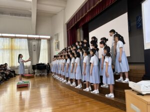 先日の児童鑑賞の成果を活かして、合唱祭の保護者鑑賞がありました。保護者の方が参観されているので、本番前は、少し緊張している表情も見られましたが、歌い終わった後は、精一杯力を発揮して達成感を味わっていることが表情から伝わってきました。今の6年生が1年生のときは、コロナ禍のため、入学式が6月になりました。当時「子供の学びをとめない」ように取り組んでいましたが、合唱祭だけは中止となりました。それだけに、成長した子供たちの姿に感慨深いものを感じました。実りの秋といわれる季節に、子供たちの成長を感じる時間を保護者の方と共有することができる貴重な時間となりました。