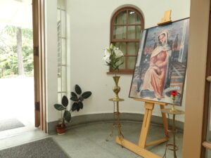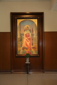 この聖母像は、学院の創立者、聖マグダレナ・ソフィア・バラがめざした女性の理想像を表すものとして親しまれてきました。世界各国に広がるどの姉妹校を訪れても、この聖画が創立者の精神を伝えています。