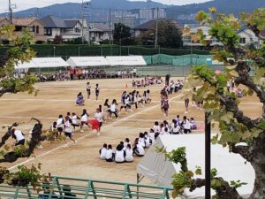 当初天候の心配がありましたがプログラムが進むにつれて空が開けていき、青空の下、みな全力で競技に打ち込むことができました。