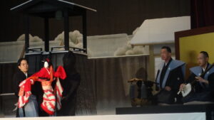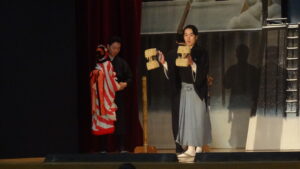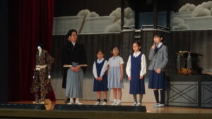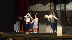 小1~中1が鑑賞した午前の部では、人形遣いの方の操作で自由にうごく人形の様子に感嘆の声が上がっていました。