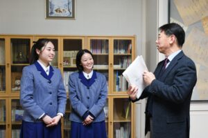 全日本高校模擬国連大会で最優秀賞を受賞した宝塚市塔の町にある小林聖心女子学院の高校生ペアに市役所に来ていただきました。ちなみにこの「塔の町」は学院の建物がその名前の由来です。… pic.twitter.com/Ku5N2XnKUh