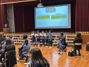 読書会では、「エルマーのぼうけん」を事前に児童も保護者も読んでおいて、感想を交流する機会を持ちました。交流する際には、児童の司会進行のもと、子供と保護者のアンケート結果を交流したり、主人公にになったつもりで自分だったらどうするか考えたりする機会を持ちました。保護者の感想との違いや、読みの視点が違いに気づく読書会となりました。読みを深めることで、物語の世界に浸る機会になりました。