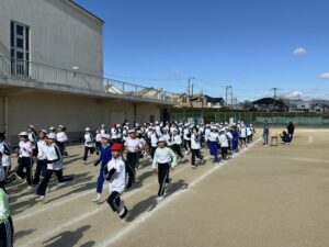 小学校 2026.01.23 マラソン記録会 マラソン記録会が1・2年生、3・4年生、5・6年生と、学団ごとに実施されました。1月19日より、1年生から4年生は、朝の耐寒かけ足をがんばってきました。5・6年生は体育の授業で長い時間走る練習を積み重ねてきました。その成果を発揮する機会となりました。記録会ですので、誰かと比べて早く走るのではなく、自分との挑戦となることを目指しました。自分と向き合う時間にすることを大切にしました。先日までの寒さが和らぎ、小春日和の中、自分の目標を目指して走りきることができました。 前の記事へ 次の記事へ