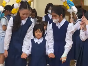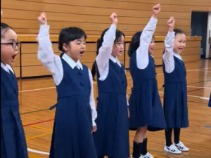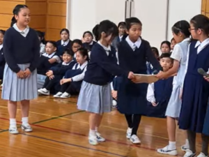 各学年がダンスやリコーダー、英語の歌、学校でのマナーを教えてくれる劇など、