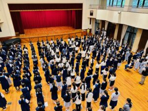 8時25分、StageⅡ朝礼。沈黙の中で祈りを捧げます。